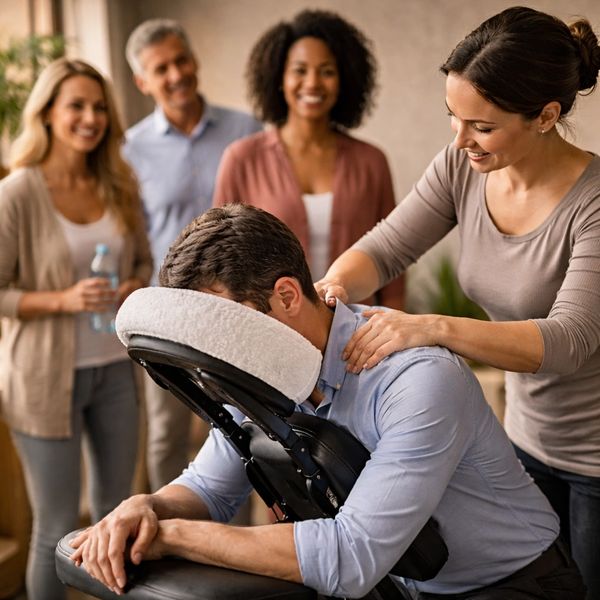 Chair massage is also available for group settings and special occasions, offering a relaxed, accessible wellness experience in a social or professional environment. Sessions are performed fully clothed and can be tailored to the flow of your event.